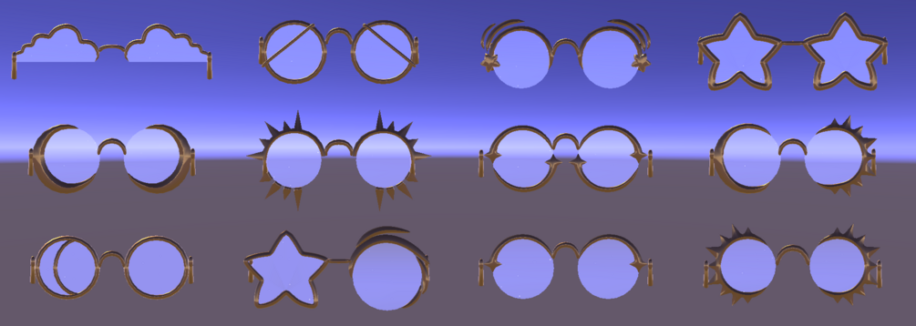 - 🌟 12 unique celestial-themed glasses with ready-to-go prefabs (+ vrcfury support included!)